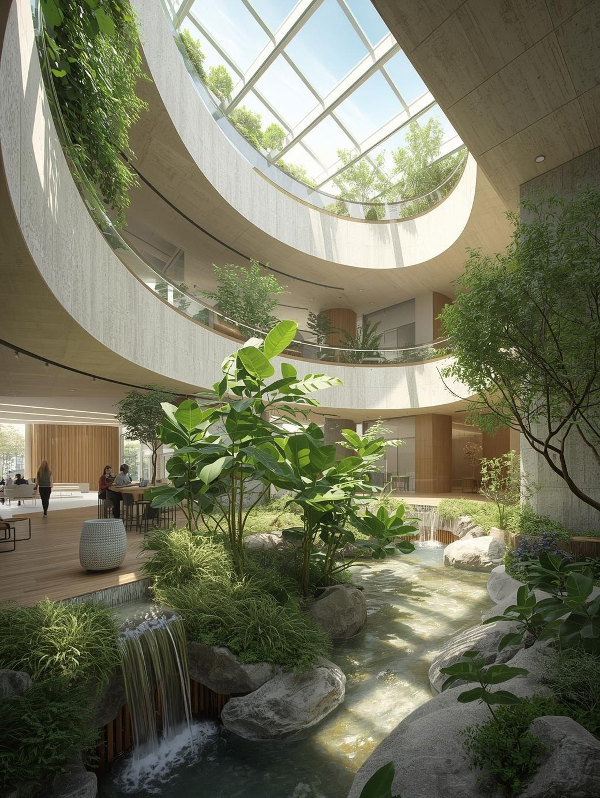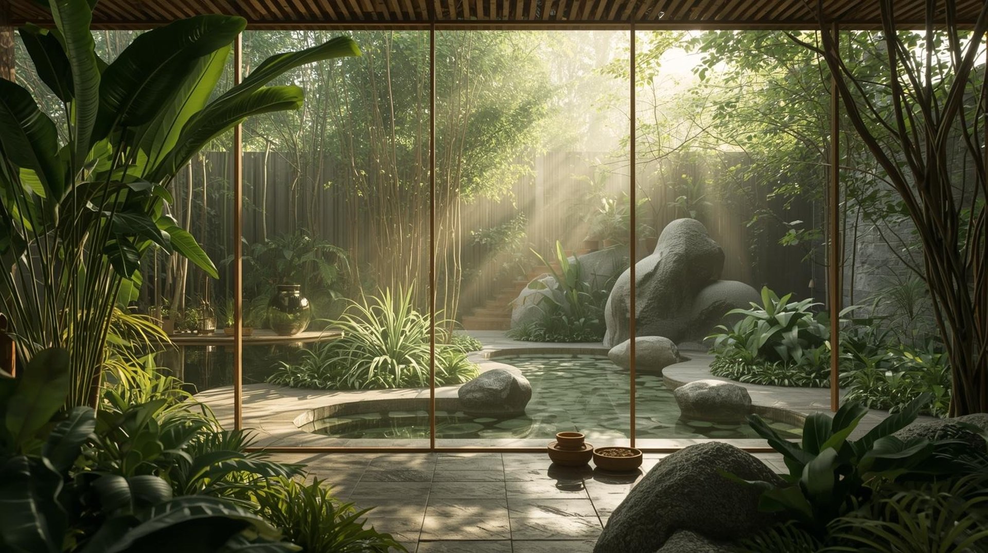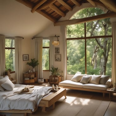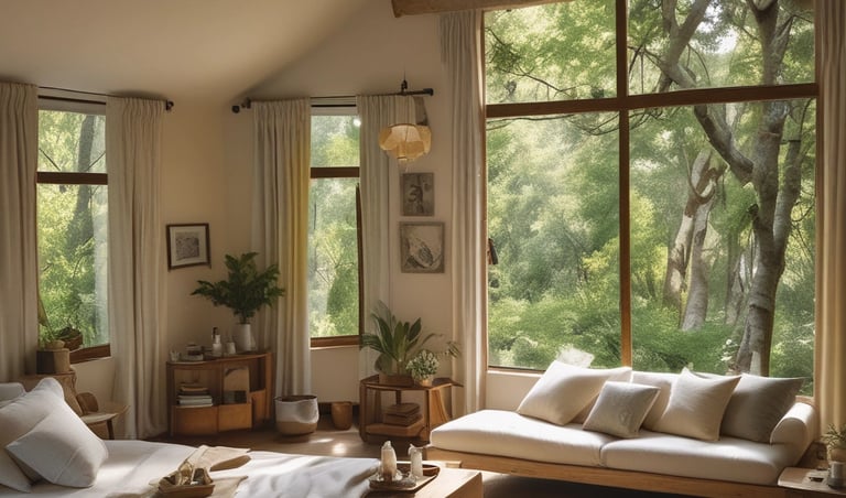 Ambient lighting creating a tranquil, nature-inspired retreat